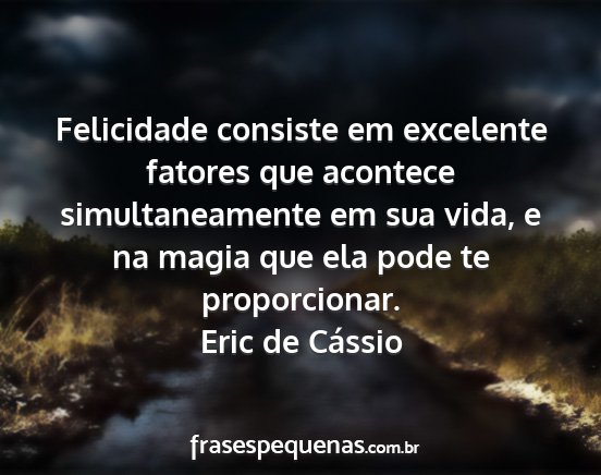 Felicidade consiste em excelente fatores que acontece simultaneamente em sua vida, e na magia que ela pode te proporcionar.Eric de Cássio