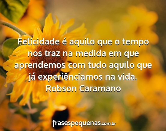 Felicidade é aquilo que o tempo nos traz na medida em que aprendemos com tudo aquilo que já experiênciamos na vida.Robson Caramano