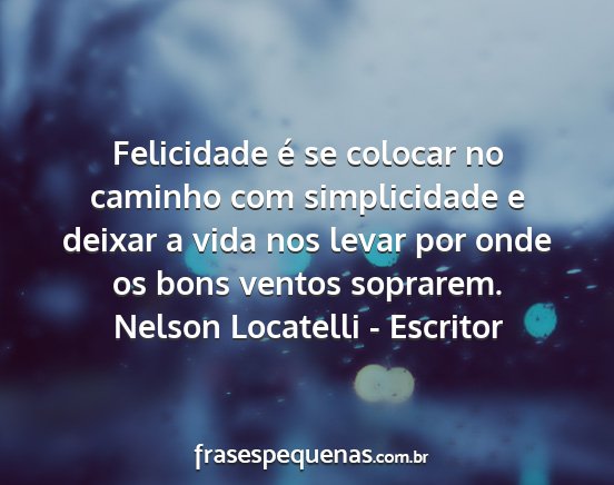 Felicidade é se colocar no caminho com simplicidade e deixar a vida nos levar por onde os bons ventos soprarem.Nelson Locatelli - Escritor