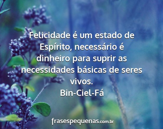 Felicidade é um estado de Espírito, necessário é dinheiro para suprir as necessidades básicas de seres vivos.Bin-Ciel-Fá