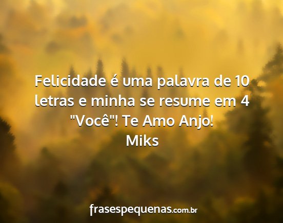 Felicidade é uma palavra de 10 letras e minha se resume em 4 "Você"! Te Amo Anjo!