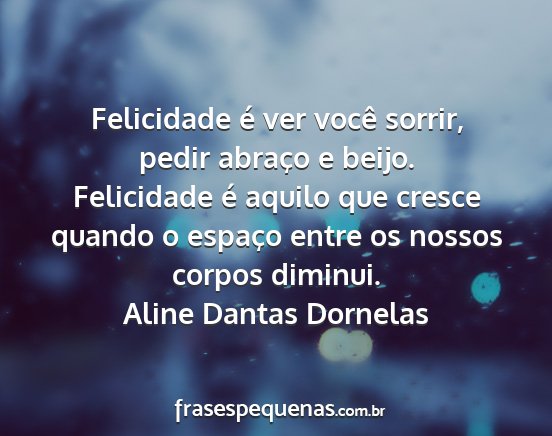 Felicidade é ver você sorrir, pedir abraço e beijo. Felicidade é aquilo que cresce quando o espaço entre os nossos corpos diminui.Aline Dantas Dornelas