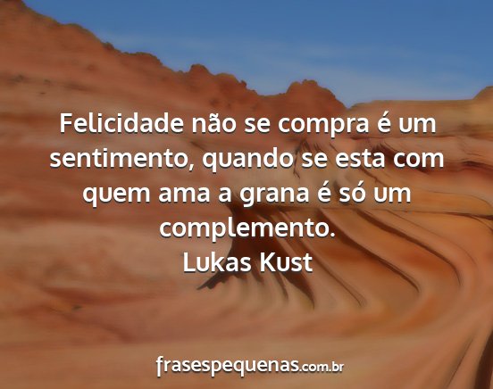 Felicidade não se compra é um sentimento, quando se esta com quem ama a grana é só um complemento.Lukas Kust
