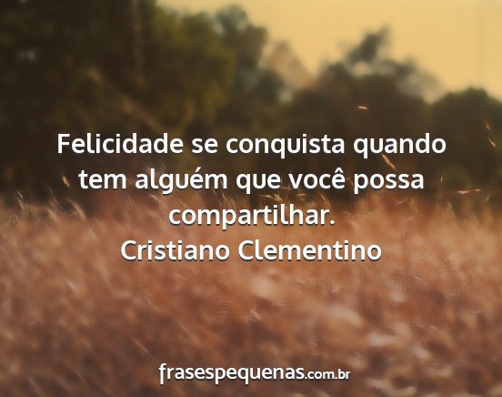 Felicidade se conquista quando tem alguém que você possa compartilhar.