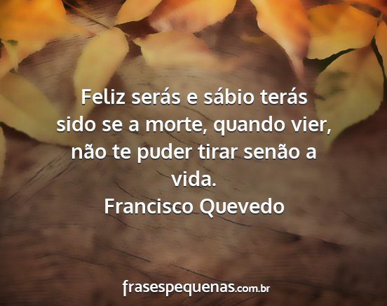 Feliz serás e sábio terás sido se a morte, quando vier, não te puder tirar senão a vida.Francisco Quevedo