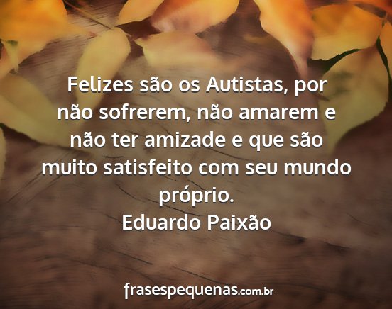 Felizes são os Autistas, por não sofrerem, não amarem e não ter amizade e que são muito satisfeito com seu mundo próprio.Eduardo Paixão