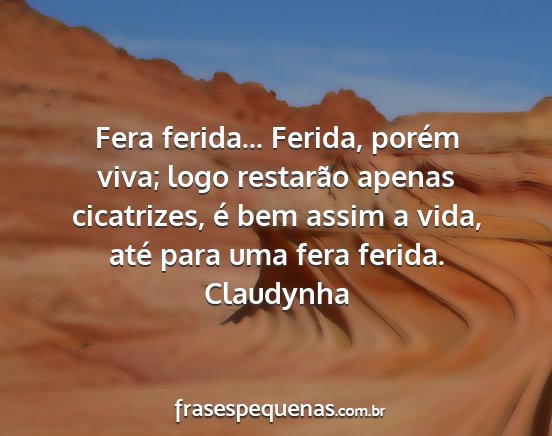 Fera ferida... Ferida, porém viva; logo restarão apenas cicatrizes, é bem assim a vida, até para uma fera ferida.Claudynha