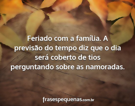 Feriado com a família. A previsão do tempo diz que o dia será coberto de tios perguntando sobre as namoradas.