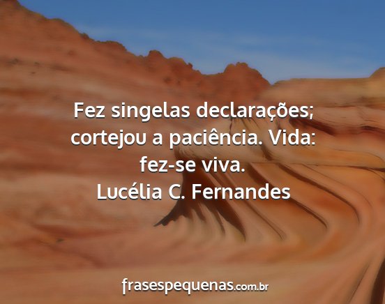 Fez singelas declarações; cortejou a paciência. Vida: fez-se viva.