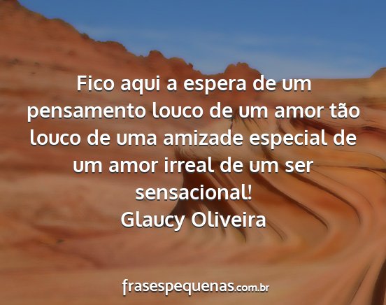 Fico aqui a espera de um pensamento louco de um amor tão louco de uma amizade especial de um amor irreal de um ser sensacional!Glaucy Oliveira