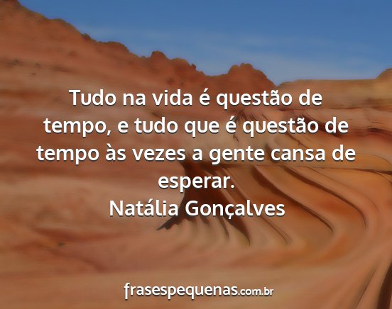 Tudo na vida é questão de tempo, e tudo que é questão de tempo às vezes a gente cansa de esperar.Natália Gonçalves