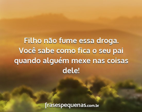 Filho não fume essa droga. Você sabe como fica o seu pai quando alguém mexe nas coisas dele!