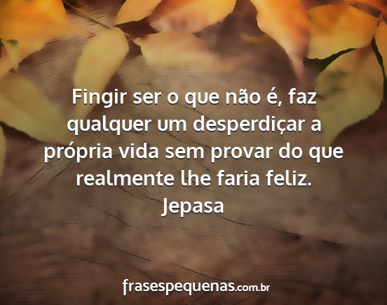 Fingir ser o que não é, faz qualquer um desperdiçar a própria vida sem provar do que realmente lhe faria feliz.Jepasa