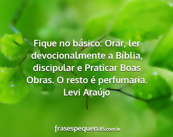 Fique no básico: Orar, ler devocionalmente a Bíblia, discipular e Praticar Boas Obras. O resto é perfumaria.Levi Araújo