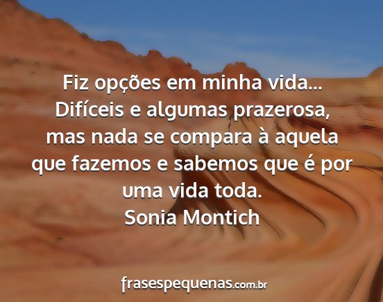 Fiz opções em minha vida... Difíceis e algumas prazerosa, mas nada se compara à aquela que fazemos e sabemos que é por uma vida toda.Sonia Montich