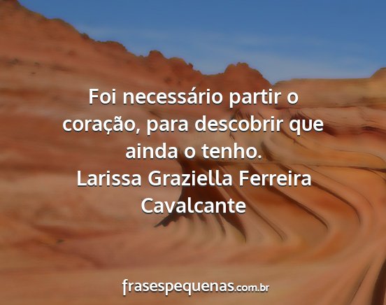 Foi necessário partir o coração, para descobrir que ainda o tenho.Larissa Graziella Ferreira Cavalcante