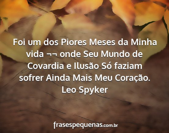 Foi um dos Piores Meses da Minha vida ¬¬ onde Seu Mundo de Covardia e Ilusão Só faziam sofrer Ainda Mais Meu Coração.Leo Spyker