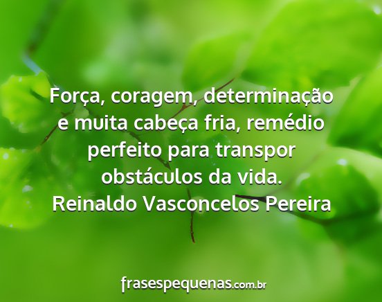 Força, coragem, determinação e muita cabeça fria, remédio perfeito para transpor obstáculos da vida.Reinaldo Vasconcelos Pereira