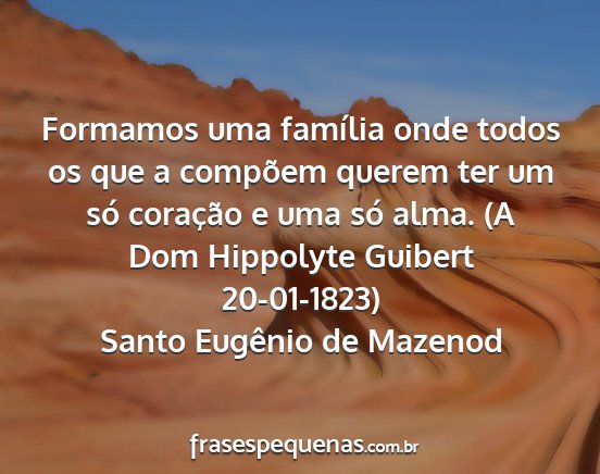 Formamos uma família onde todos os que a compõem querem ter um só coração e uma só alma. (A Dom Hippolyte Guibert 20-01-1823)Santo Eugênio de Mazenod