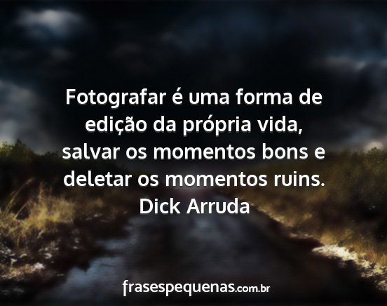 Fotografar é uma forma de edição da própria vida, salvar os momentos bons e deletar os momentos ruins.Dick Arruda