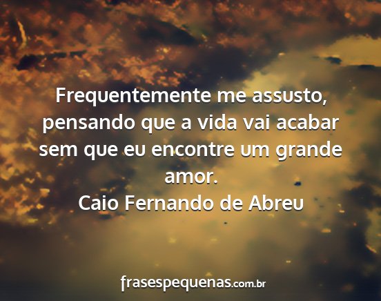 Frequentemente me assusto, pensando que a vida vai acabar sem que eu encontre um grande amor.Caio Fernando de Abreu