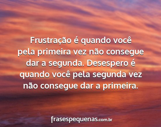 Frustração é quando você pela primeira vez não consegue dar a segunda. Desespero é quando você pela segunda vez não consegue dar a primeira.