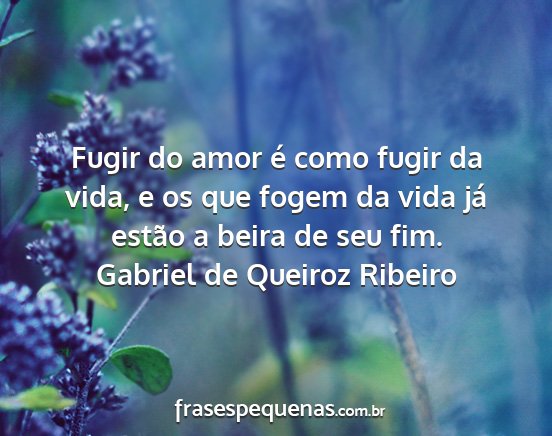 Fugir do amor é como fugir da vida, e os que fogem da vida já estão a beira de seu fim.Gabriel de Queiroz Ribeiro