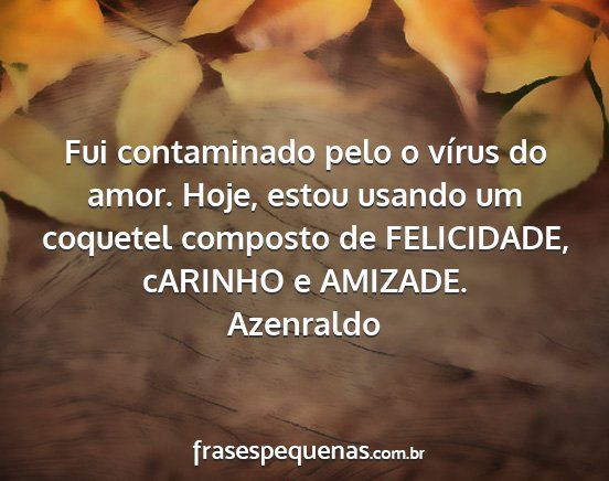 Fui contaminado pelo o vírus do amor. Hoje, estou usando um coquetel composto de FELICIDADE, cARINHO e AMIZADE.Azenraldo
