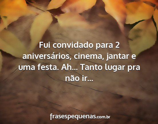 Fui convidado para 2 aniversários, cinema, jantar e uma festa. Ah... Tanto lugar pra não ir...