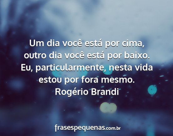 Um dia você está por cima, outro dia você está por baixo. Eu, particularmente, nesta vida estou por fora mesmo.Rogério Brandi