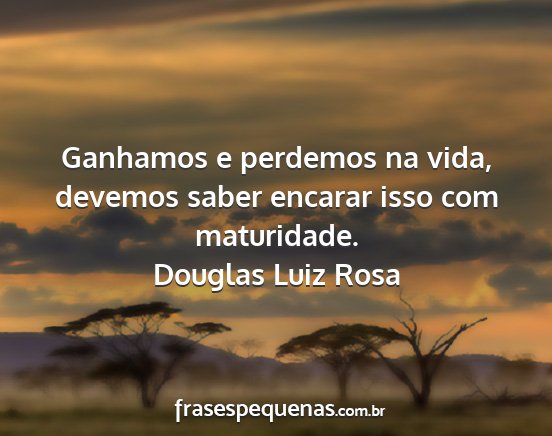 Ganhamos e perdemos na vida, devemos saber encarar isso com maturidade.