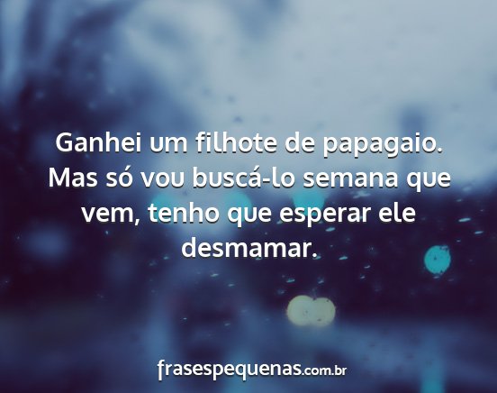 Ganhei um filhote de papagaio. Mas só vou buscá-lo semana que vem, tenho que esperar ele desmamar.
