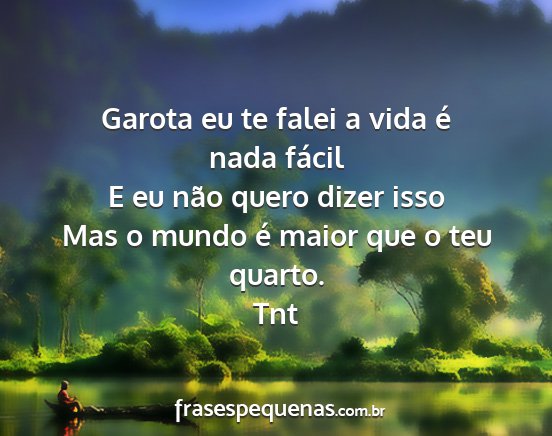 Garota eu te falei a vida é nada fácilE eu não quero dizer issoMas o mundo é maior que o teu quarto.Tnt