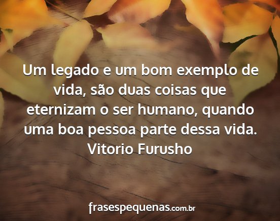 Um legado e um bom exemplo de vida, são duas coisas que eternizam o ser humano, quando uma boa pessoa parte dessa vida.Vitorio Furusho
