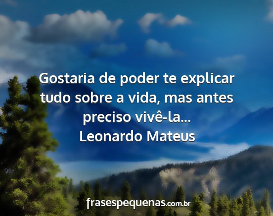 Gostaria de poder te explicar tudo sobre a vida, mas antes preciso vivê-la...