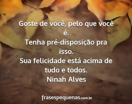 Sua felicidade está acima de tudo e todos.Ninah Alves