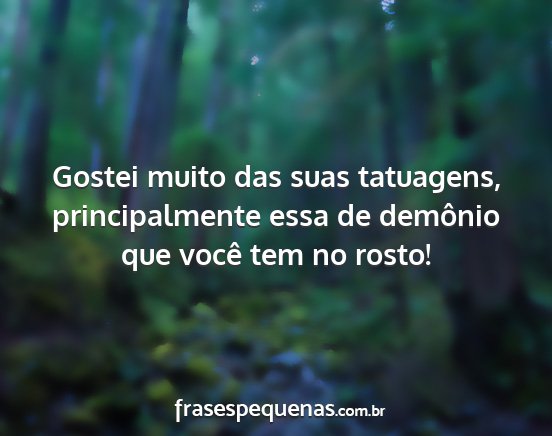 Gostei muito das suas tatuagens, principalmente essa de demônio que você tem no rosto!