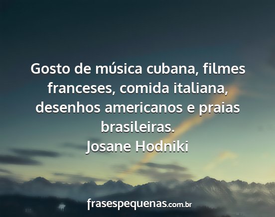 Gosto de música cubana, filmes franceses, comida italiana, desenhos americanos e praias brasileiras.Josane Hodniki