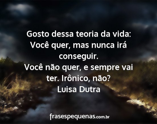 Você não quer, e sempre vai ter. Irônico, não?Luisa Dutra