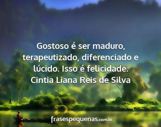 Gostoso é ser maduro, terapeutizado, diferenciado e lúcido. Isso é felicidade.Cintia Liana Reis de Silva
