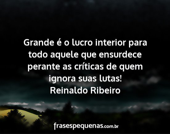 Grande é o lucro interior para todo aquele que ensurdece perante as críticas de quem ignora suas lutas!Reinaldo Ribeiro