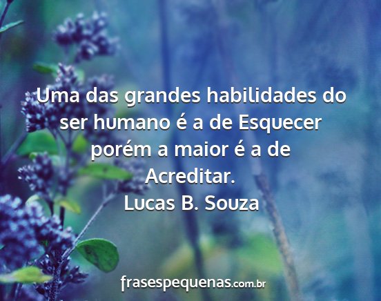 Uma das grandes habilidades do ser humano é a de Esquecer porém a maior é a de Acreditar.Lucas B. Souza