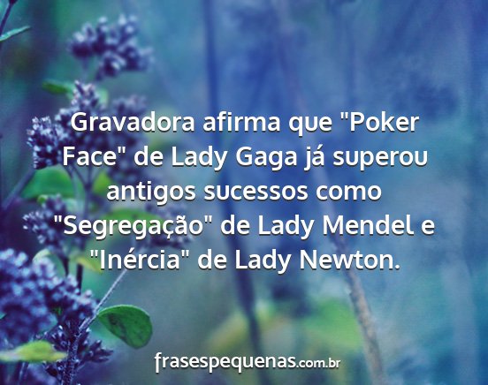 Gravadora afirma que "Poker Face" de Lady Gaga já superou antigos sucessos como "Segregação" de Lady Mendel e "Inércia" de Lady Newton.