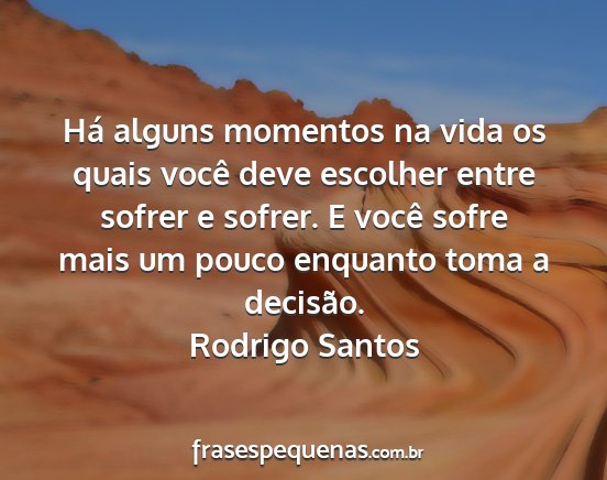 Há alguns momentos na vida os quais você deve escolher entre sofrer e sofrer. E você sofre mais um pouco enquanto toma a decisão.Rodrigo Santos