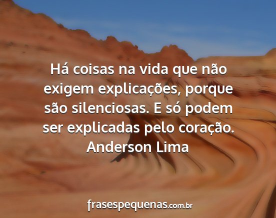 Há coisas na vida que não exigem explicações, porque são silenciosas. E só podem ser explicadas pelo coração.Anderson Lima