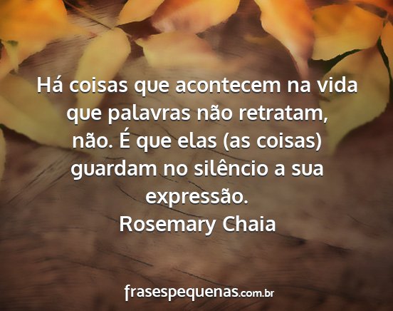 Há coisas que acontecem na vida que palavras não retratam, não. É que elas (as coisas) guardam no silêncio a sua expressão.Rosemary Chaia