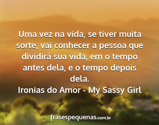 Uma vez na vida, se tiver muita sorte, vai conhecer a pessoa que dividirá sua vida, em o tempo antes dela, e o tempo depois dela.Ironias do Amor - My Sassy Girl