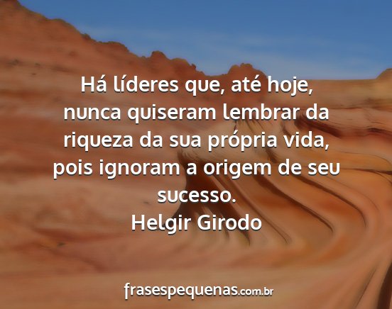 Há líderes que, até hoje, nunca quiseram lembrar da riqueza da sua própria vida, pois ignoram a origem de seu sucesso.Helgir Girodo