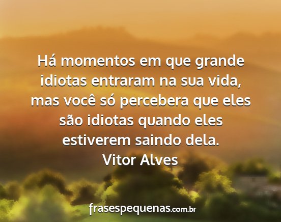 Há momentos em que grande idiotas entraram na sua vida, mas você só percebera que eles são idiotas quando eles estiverem saindo dela.Vitor Alves