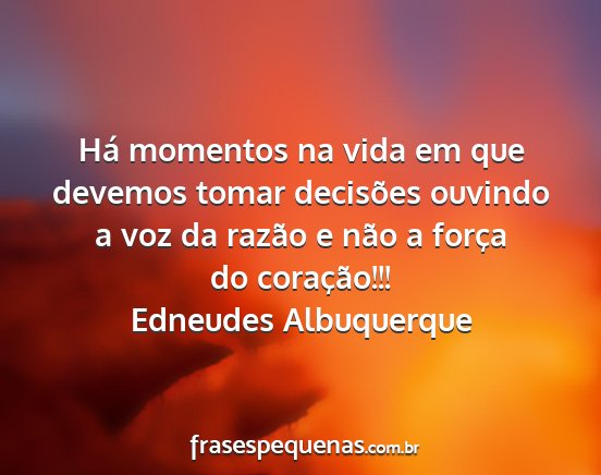 Há momentos na vida em que devemos tomar decisões ouvindo a voz da razão e não a força do coração!!!Edneudes Albuquerque